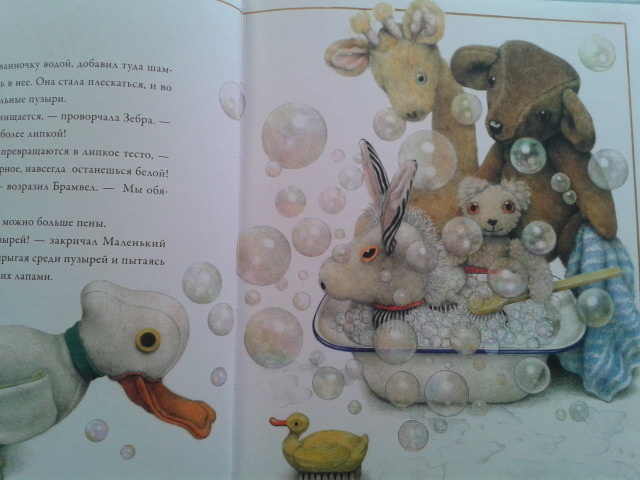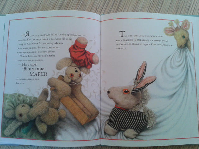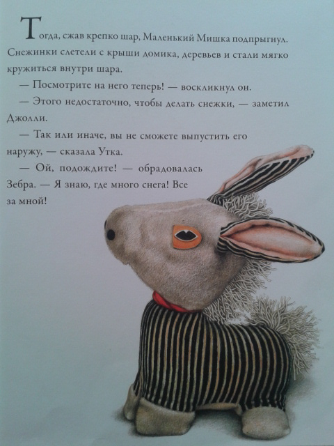 Главный показатель успеха книги у ребенка - мы в нее играем после прочтения. Вчера Аришка притащила свою большую картонную коробку и покрывало с кровати и заявила, что сейчас будет кататься с горки! А еще обсыпалась своими стеклянными шариками и говорила, что это снег падает на мишку