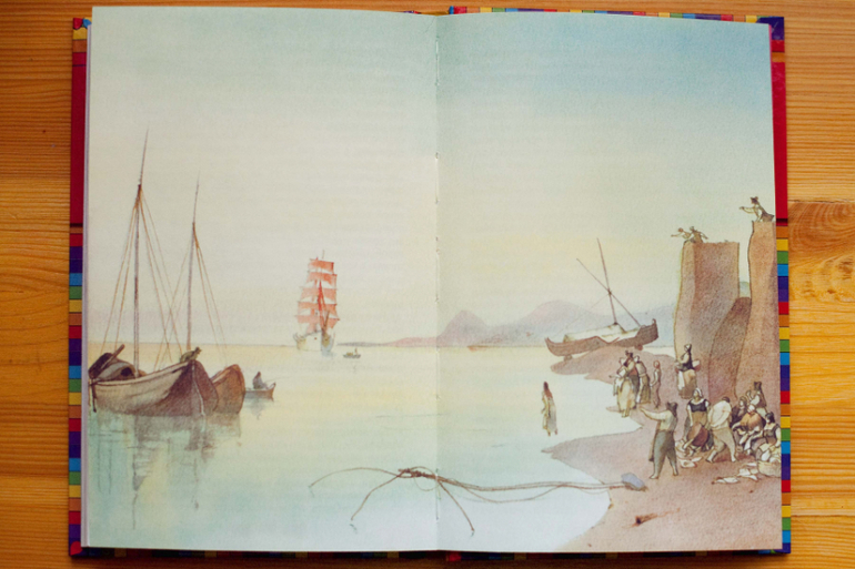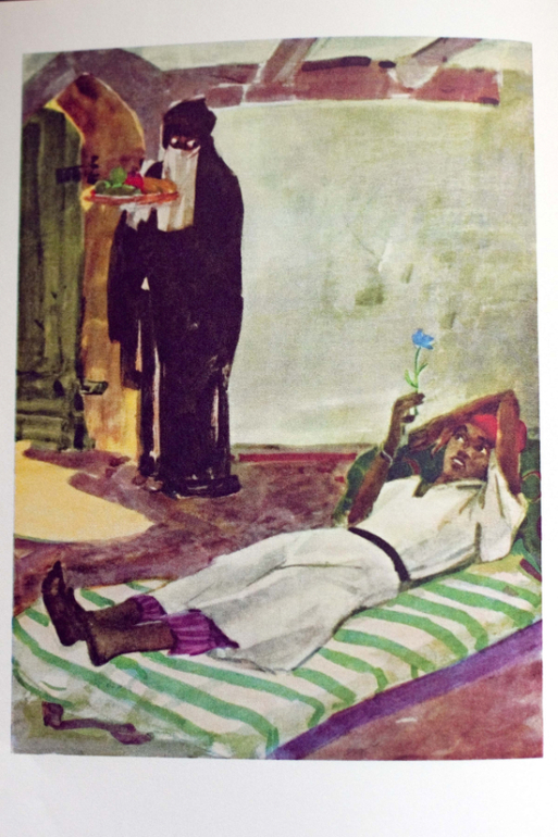 Эта книга которая не входила в список хотелок. ЕЕ показывали тут, но просмотр в интернете не вызвал желания ее купить. Жутко тогда не понравились картинки, "темные, размазанные, непонятные" вот что возникло в голове при просмотре. Ситуация кардинально поменялась когда эта книга полисталась в магазине. Ощущение востока, ощущения духа того времени, вот что возникло в голове при просмотре вживую. Книга появилась у нас.