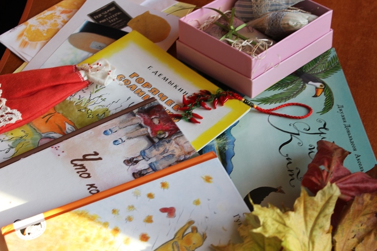 Я уже была дома, а чудеса продолжались. Сколько раз вы видели своего почтальона? Мой уже свой человек в доме. Каждый день она заходит ко мне и несет посылки, а они сыплются каштанами, письмами, осенними листьями, открытками и ...книгами.