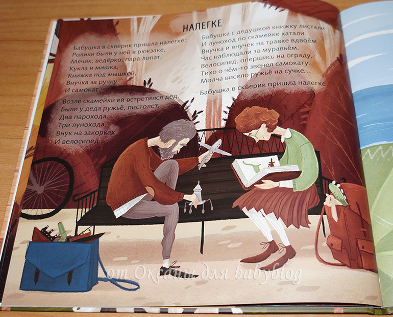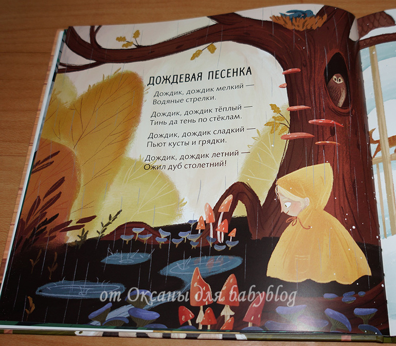 А вот начиная с этой страницы я была шокирована. Нет, не стихами, конечно же, они по-прежнему удивительны и восхитительны. Иллюстрациями. Если не читать текст, то сразу напрашивается фраза "бедный червячок". Почему-то кажется, что эта девочка с огромными невменяемыми глазами сейчас его скушает...
