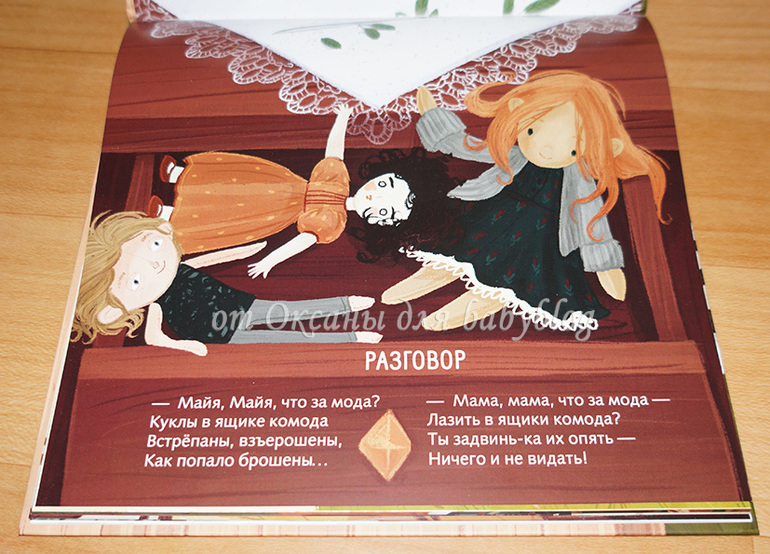Приглушенные цвета, очень гармоничная обложка. Девочка, уютно устроившаяся за столом, листает книгу. Давайте заглянем внутрь и мы.