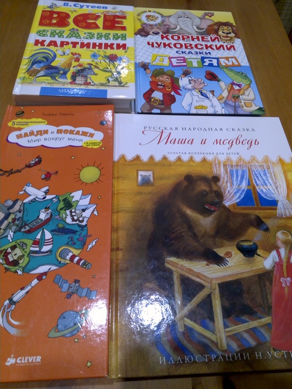Большие сомнения у меня вызывала книга В. Сутеева, так как она очень толстая и я боялась, что это отпугнет малыша, но не тут-то было:-) Она так ему понравилась, что порой мне приходилось прятать ее, что бы не читать по 101 разу:-) Понятно, что мы читаем там невсе сказки, так как некоторые нам еще не по возрасту. Но Три котенка, Цыпленок и утенок, Под грибом, Капризная кошка, Кораблик и все сказки картинки читаем регулярно!