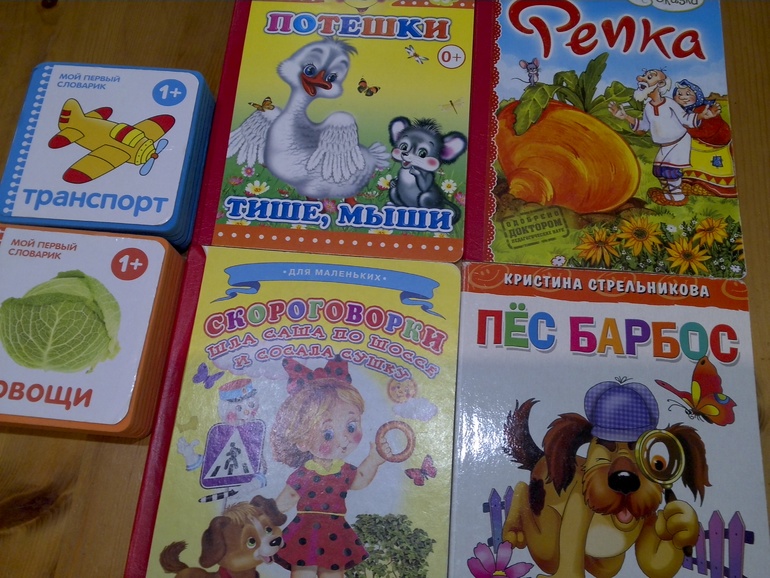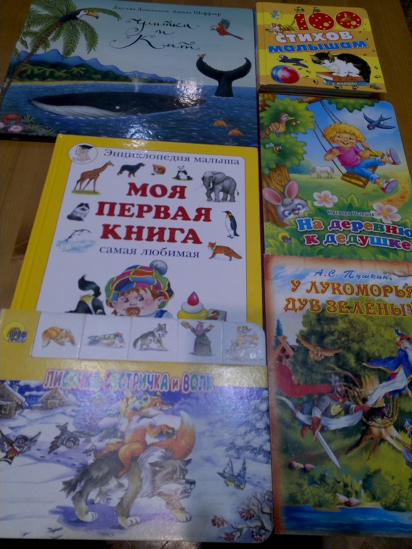 Наше чтение в этот период выглядило так: я ложилась рядом и, держа книгу на вытянутых руках, начинала читать или рассказывать, в другое время просто вокруг расставляла книжные развороты или картинки и иногда обращала на них внимание малыша. Больше всего Владька любил потешки и скороговорки!