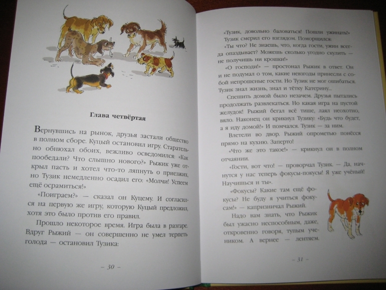 Давно я не читала таких ухохатывательных книжек! Тут есть что-то и от Носова ("Бобик в гостях у Барбоса"), и от украинской сказки "Жил-был пес" с этим знаменитым: "Щас спою!"... Принцип тот же: "очеловечивание" домашних животных, истории, в которых они думают, ведут беседы, совершают поступки, написанные с неизменным юмором и позитивом :) А тут еще оказалось, что ребенку ну очень, очень по душе не просто "сказки про животных", а именно такие вот истории :)
