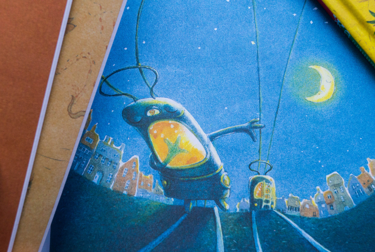 Однажды гораааздо более объёмная, но при этом явно на постарше. Больше текста, меньше рисунков. И сами иллюстрации при этом более сложные для восприятия. И по настроению, и по цветовой гамме, и по образности. На мой взгляд, книга будет идеальна лет в пять и дальше. Тем более, что шрифт в ней гигантский и будет шибко полезен для первого самостоятельного чтения. И много хорошего белого в книге. Я такое люблю. И встречается такое сейчас всё реже. Плюс в книге есть замечательная вступительная статья Дины Рубиной об авторе. Вот маленькая, но ёмкая цитата оттуда: "Вообще, Рената Муха - это приключение. И не всегда - безопасное". По-моему, весело сказала :) А ещё эта книга нежная очень.
