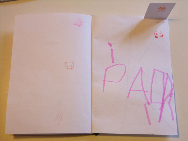 Вот он талант, потом будем на аукционе гоняться за этими чудо листочками, когда дочка известной писательницей станет)))))Эти первые детские буковки, такие трогательные на листочках))))
