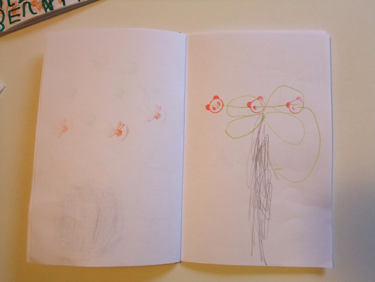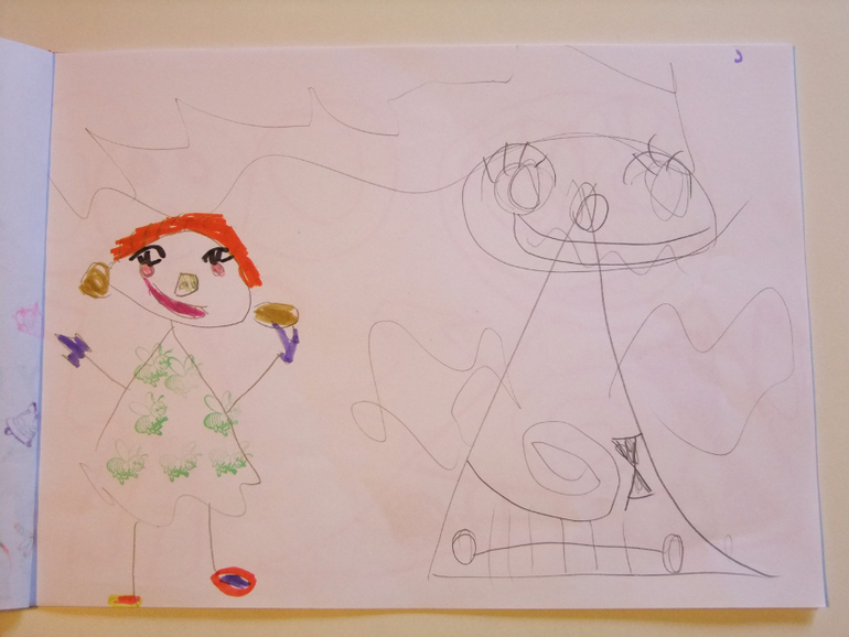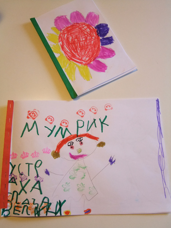 "Мама, я сегодня сочинила сказку, послушай! Жила-была добрая лисичка, она всем раздавала мороженное: ёжикам, зайчикам, медведям. И угостила енота, а он стал его как обычно в реке полоскать. Представляешь, мороженное смылось и он расстроился! Оказывается не всю еду надо мыть :)))). Давай сделаем сами книгу про эту сказку, я картинки нарисую!"