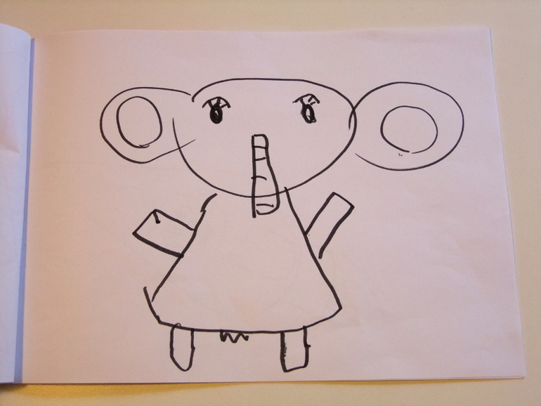 Да, до этого слонов в рисунках не было замечено, там ещё на платье рюшечки, девочка же! книга всем хорошим людям в подарок :)