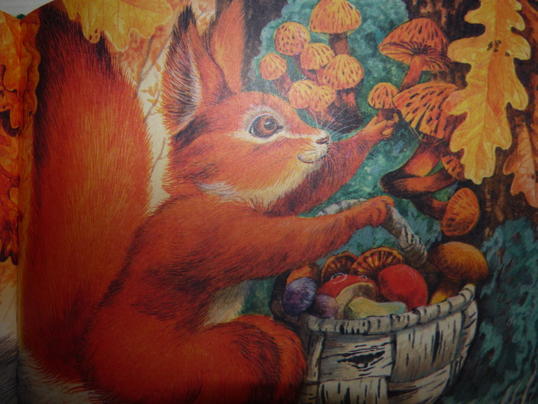 Действительно, наверное, только осенью можно увидеть сочные краски желтого, красного, оранжевого! А белочка-то какая хозяюшка запасливая:-)