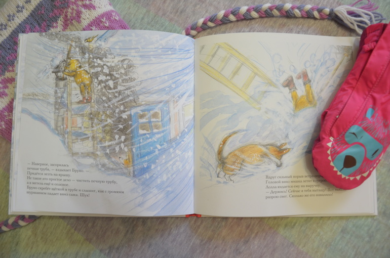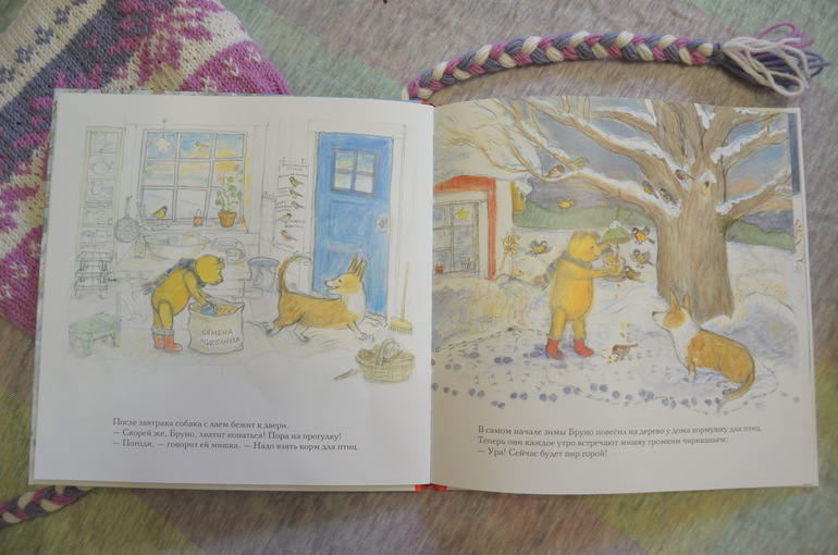 Мишка Бруно и его собака Лола сразу же нашли своего верного слушателя в лице моей дочери, хоть и читаем мы пока не всю историю целиком, только вот до этого разворота.