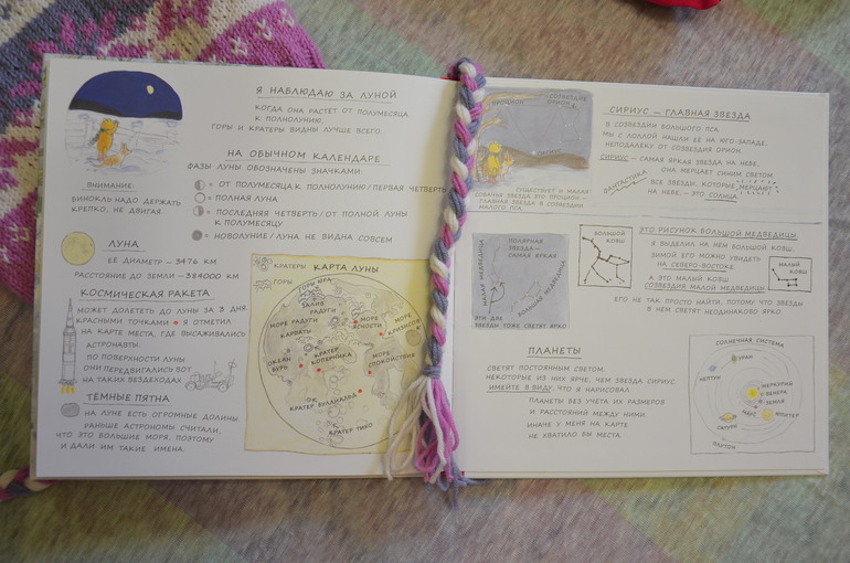 На нахзаце - записки юного астронома. Я как будто перенеслась в свои школьные годы на урок астрономии. Особенно мне понравилось про луну, космические ракеты и астронавтов:
