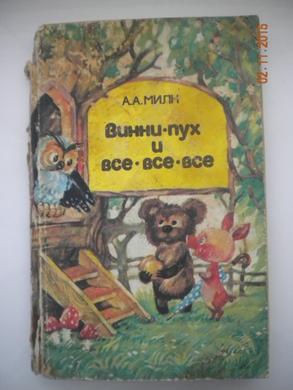 1. На самом первом месте оказалась старенькая книга моего детства "Винни-Пух и все-все-все" А.А. Милна. Моя мама чисто случайно нашла ее в коробке на чердаке. Вид конечно у нее очень потрепаный, да и уголки с обратной стороны скушали мышки, но доча ее так полюбила и прониклась к ней, что даже одно время таскала ее в сад. Слушает аж открыв ротик. А вот книга из Лабиринта с красочными картинками ей совершенно не понравилась - пришлось подарить другой малышке.