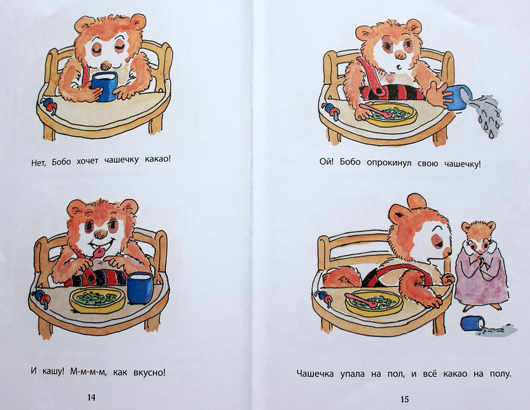 И самая любимая фраза дочки стала после прочтения этой книжки : "Мам, я (ем, играю, гуляю, сижу в покупательской телеге и пр. - выберите нужное) как Бобо? Да?".