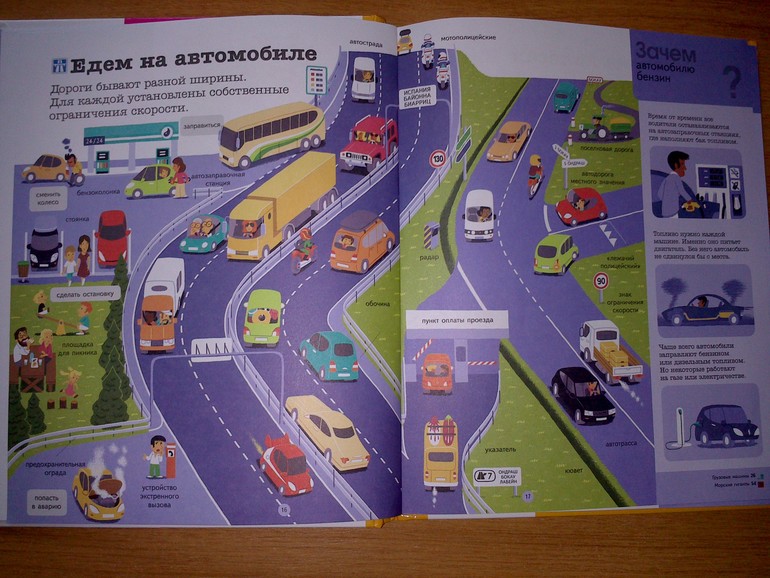 Это не первая наша книга о транспорте(тоже часто читаемые Книжки для настоящего мальчишки),но,несомненно,самая насыщенная иллюстрациями и информацией.И то,и другое адаптировано для детского возраста.Лично я рекомендовала бы эту книгу мальчишкам и девчонкам от 2-х и до 5-ти лет,т.к. позднее всё таки нужно что-то более информативное.