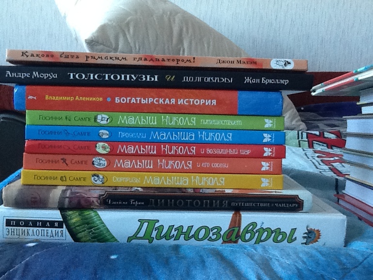 Надо еще отметить, что книги , которые Игорь перечитывает, он НЕ ВСЕГДА ЧИТАЕТ ЦЕЛИКОМ. Например, Энциклопедию о динозаврах, Танки , я уверена , он читал выборочно. Насчет остальных мне трудно оценить, так как у него своя комната. Вообще, я узнаю о том, что он читает, когда он кушает на кухне, так как у него всегда (когда папа его не видит) книга на столе.
