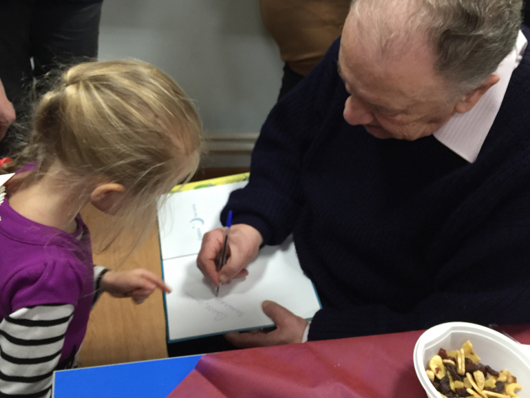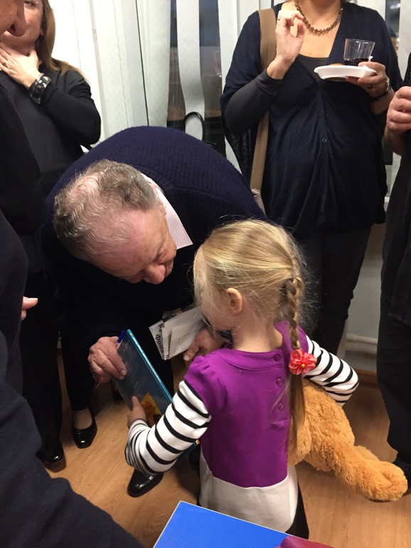 На самом деле, Виктора Александровича пришли поздравить друзья и коллеги, выступали, говорили теплые речи, дарили цветы. А таких, как мы, "простых читателей", было почему-то не много. Детей и вовсе пять человек, включая Олесю.
