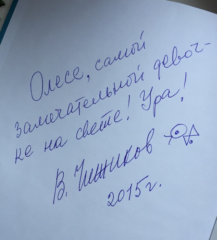Когда я сегодня просматривала видео с того вечера при дочери, она услышала фамилию Чижиков и встрепенулась: "Чижиков! Это тот художник, которого мы рисунки смотрели! И он мне Айболита подписал!"