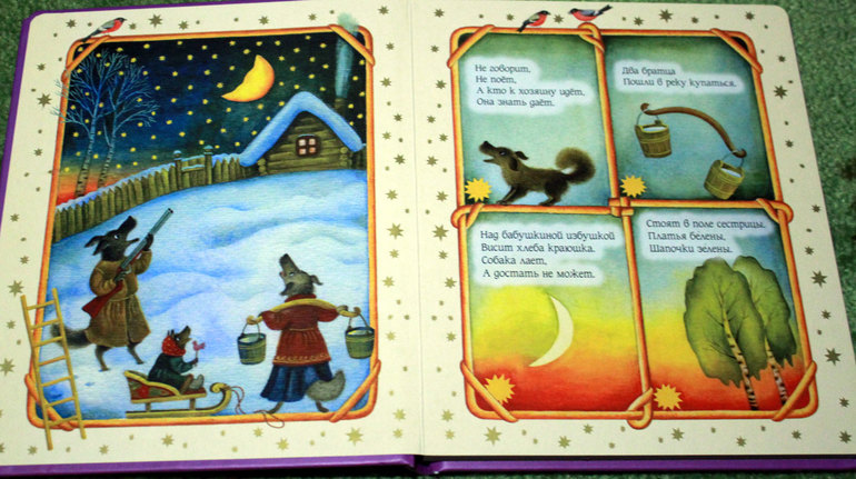 Загадки манили нас сразу, особенно волшебной казалась собака с ружьем посреди ночи и сова в дупле. Мог разглядывать долго, разглагольствовать особо не буду - лучше покажу.