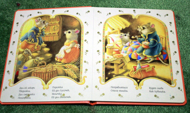 История про мышку славная - мышка заболела, пришел лекарь, накормил и выздоровела.