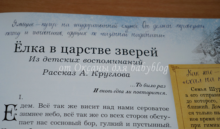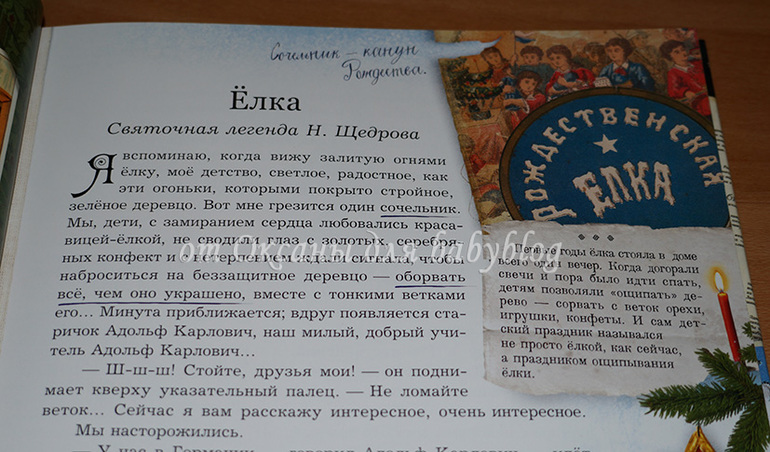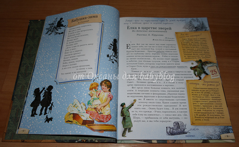 Детям лет с 6-7 будет очень хорошо читать эту книгу вместе со старшими (с родителями, братьями-сестрами, дедушками-бабушками, ну то есть в тесном семейном кругу). Устроиться вместе на уютном диванчике (теплый плед, морозный вечер за окном, еловые ветки в вазе на столе, мандарины на тарелочке неподалеку) и читать, читать, читать. Эти минуты не забудутся никогда в жизни.