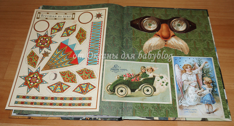 В нём две открытки, картонная маска и заготовки для ёлочных игрушек. Пустячок, а приятно.
