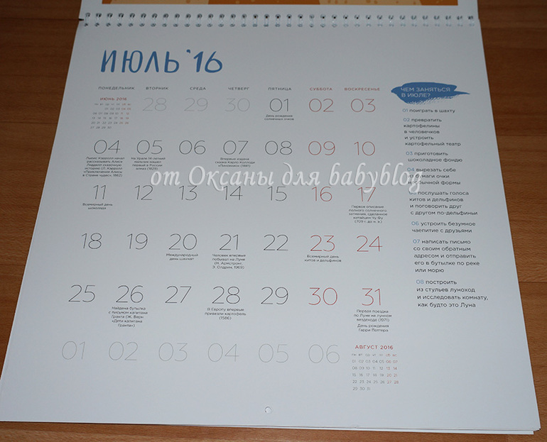 Любое такое событие или праздник можно найти в миниатюре на иллюстрации к тому же развороту в календаре. Вот и еще одно интересное развлечение для всей семьи.