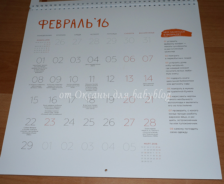Помимо интересных дат, на полях календаря нас ждет целый список идей! Вот чем можно заняться с ребенком интересным и увлекательным.