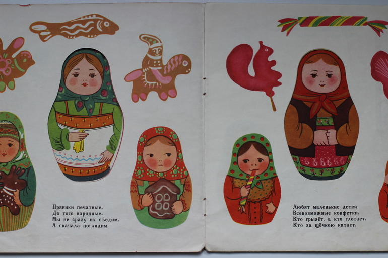 7. И почему-то в последнюю очередь (наверное потому что именно сейчас мы их не читаем) я покажу две тонкие книжки из детства нашего папы. Эти книжки прекрасные, и по содержанию, и по иллюстрациям. Я первыми их предложила Мишутке в качестве серьезного чтения. К тому же он любит матрешки, поэтому предложить хорошую книгу про матрешки я была просто обязана)