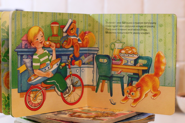 не думала, что дети в возрасте 1,5 будут проявлять интерес к этому произведению Маяковского, но оба слушали и выбирали книгу сами
