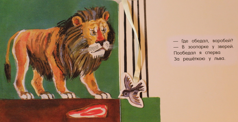 4. Вот эта книга очень мне нравится, и стихотворение хорошее, нейтральное, про животных, и издание прекрасное! "Где обедал воробей" С. Маршак. Воробей на ленте, поэтому это чтение- игра, воробей у нас на каждой странице "летает") Рисунки красивые! Больше бы таких книг! Но я не могу найти что-то аналогичное, есть вариант книг-раскладушек, но для Мишиного возраста они пока не подходят.
