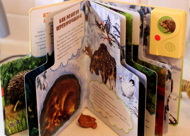 5. Это рассказы Сладкова от Азбукварика, Михаил любит сам сидеть с книгой и слушать ее. Хорошая книга, нам подарили. Из всех книг со звуком я оставила на полке сейчас именно эту, остальные чунги-чанги убрала, мешают они нам порой читать)