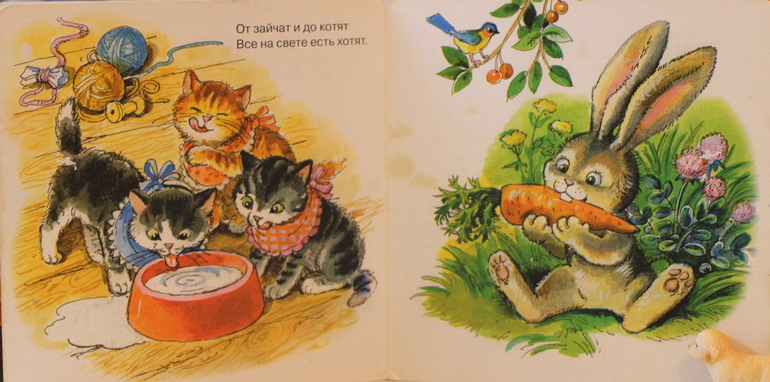 6. и две книжечки-картонки издательства Лабиринт-пресс с небольшими стихотворениями (см. Лабиринт серия Картонки- много всего интересного для малышей, но всё отсутствует), про зверька Соню и про зайку. Мишута любит их слушать. Качество хорошее, написано, что даже в Италии отпечатано, что поражает)