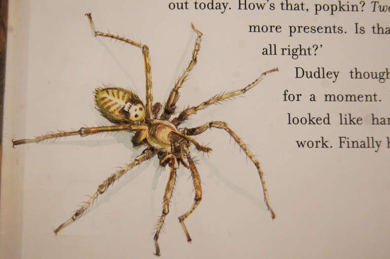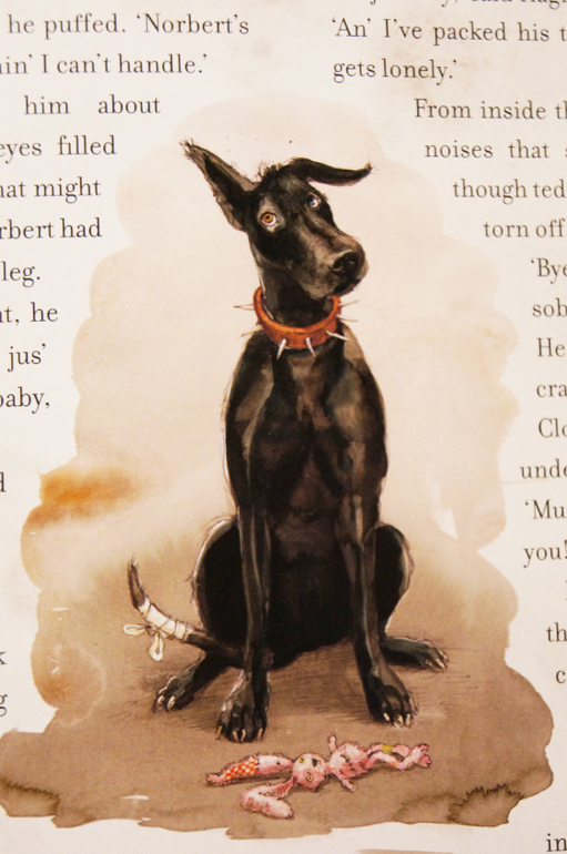 Вся книга в кляксах от чернил, появляющихся то тут то там, подходящих по цвету к иллюстрациям.