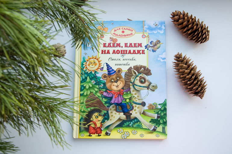 В продолжении темы стихов есть книга чуть посложнее «Едем, едем на лошадке» (из-во Махаон, 2013 г.). Здесь простор безграничный - русские потешки, детские песенки разных народов мира в замечательных переводах (Яхнин, Чуковский, Токмакова), авторские стихи (Пушкин, Жуковский, Плещеев, Саша Чёрный, Хармс, Чуковский, Токмакова, Барто, Берестов, Мошковская, Кушак). Уже список замечательных имен говорит в пользу книги.