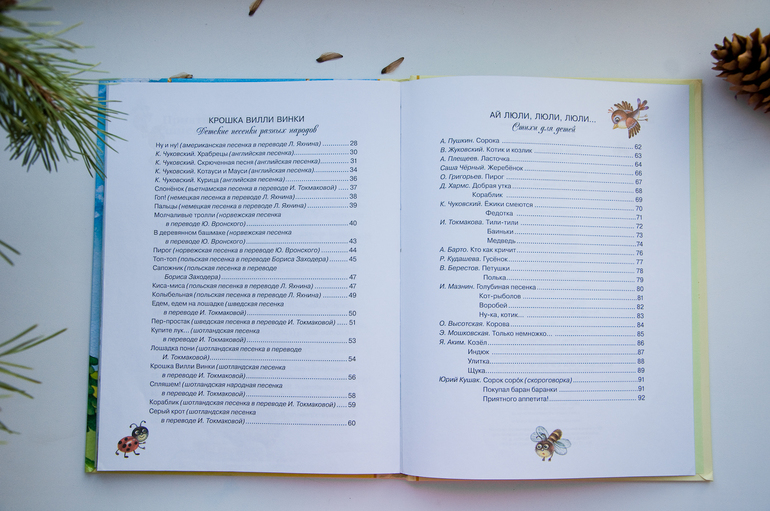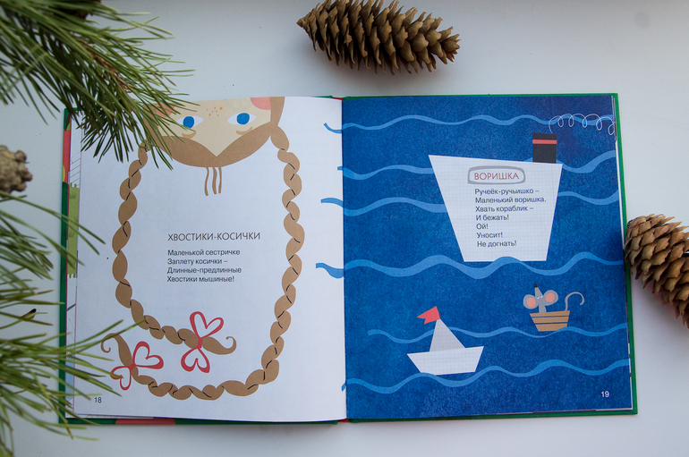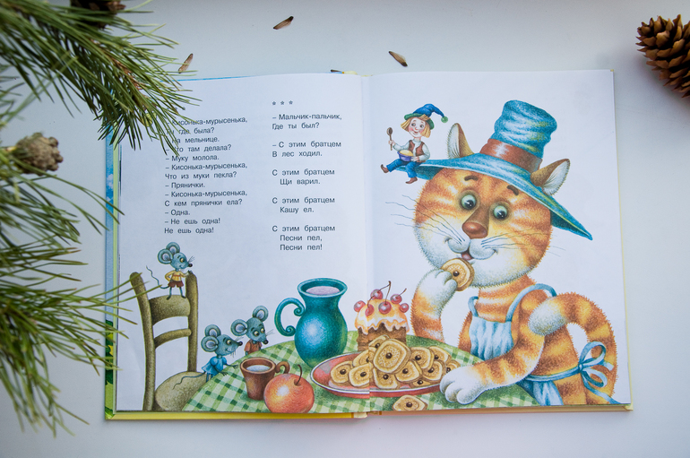 И она действительно хороша. Яркая, детская, смешная. Иллюстрации не вполне мои, но сильно не напрягают. Покупка была стоящая, долго читали и читаем до сих пор иногда. Особенно любим «Мауси и Котауси» и польскую песенку: