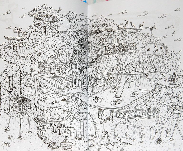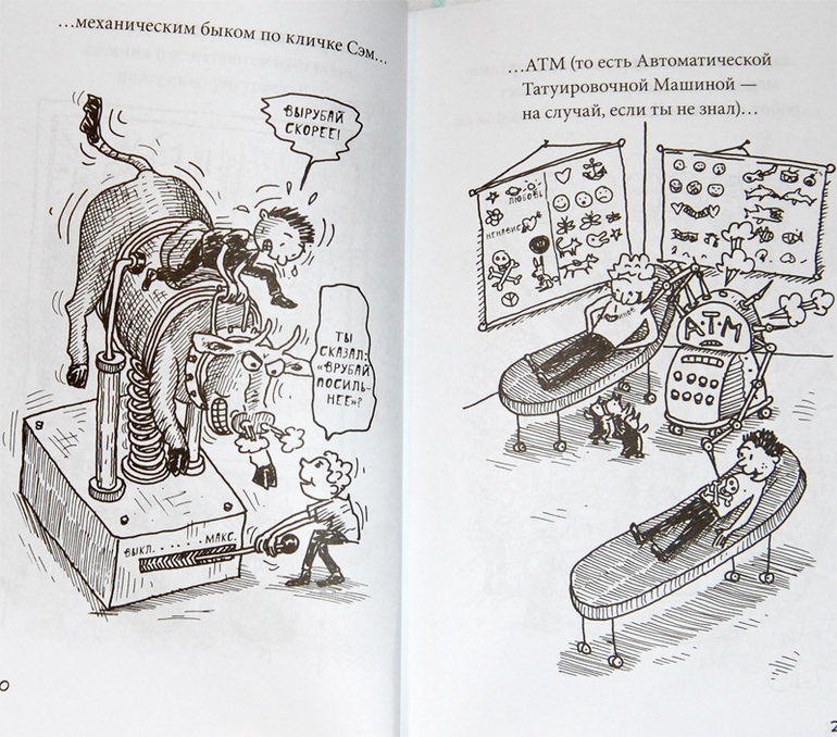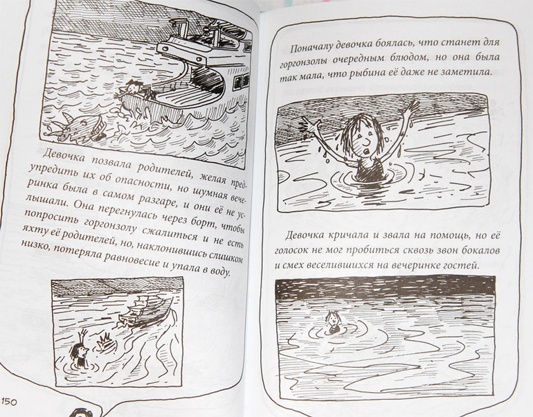 Это книга - комикс практически. Текст там есть, иногда даже на пол-страницы, но больше всего действий описаны с помощью рисунков. В книге свыше 350-ти страниц, на каждой из которых несколько рисунков, то есть их больше тысячи!