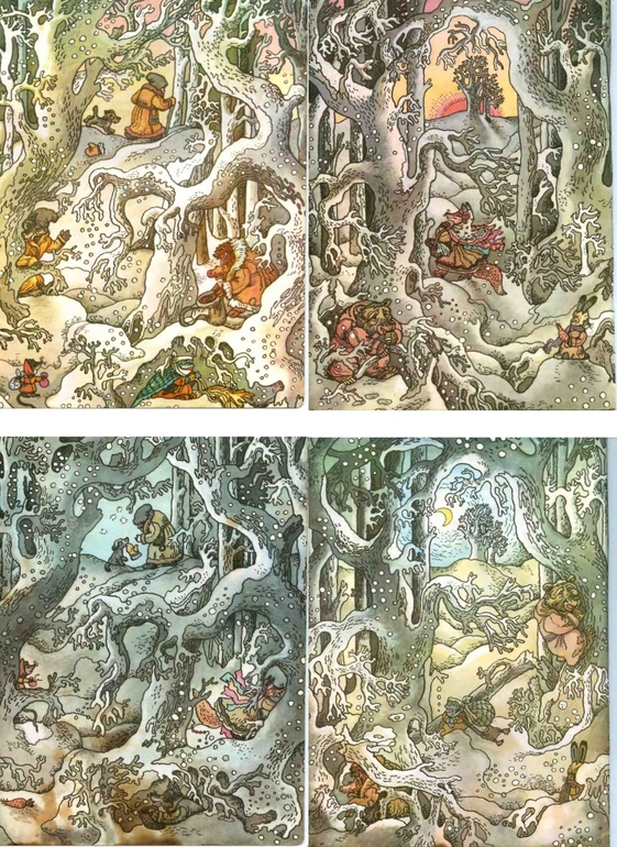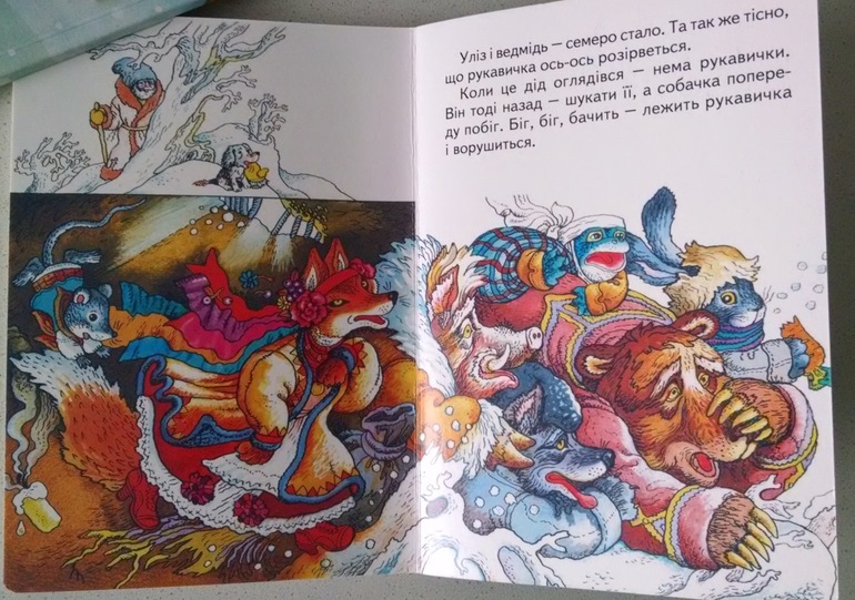 В архиве есть и зимний Кротик, и Мяули, и Человеткин, и Занималки, и Ёжик и Кролик и еще много чего красивого зимнего, а времени перечислять и подбирать картинки - уже нет. Украиноязычным порекомендую ту самую оригинальную «Рукавичку» и «Рукавички-мандрівнички» (они в формате djvu) - дочь, когда она в образе поросенка, теперь регулярно предлагает мне надеть рукавицы «одну на нос, другую на хвост».