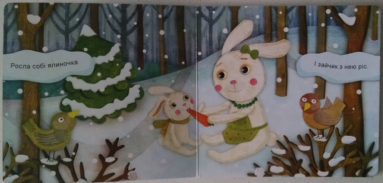 Опять, привет, детство. Именно под эту песню я водила хороводы вокруг елки в саду, и не очень-то любила. Уже тогда я соображала, что у зайца отобрали дом ради получасового веселья детишек. Современные иллюстрации Виктории Намозовой и просьбы дочки спеть еще помогают мне отвлечься от тяжелых дум по поводу дальнейшей судьбы бедного зайчика.