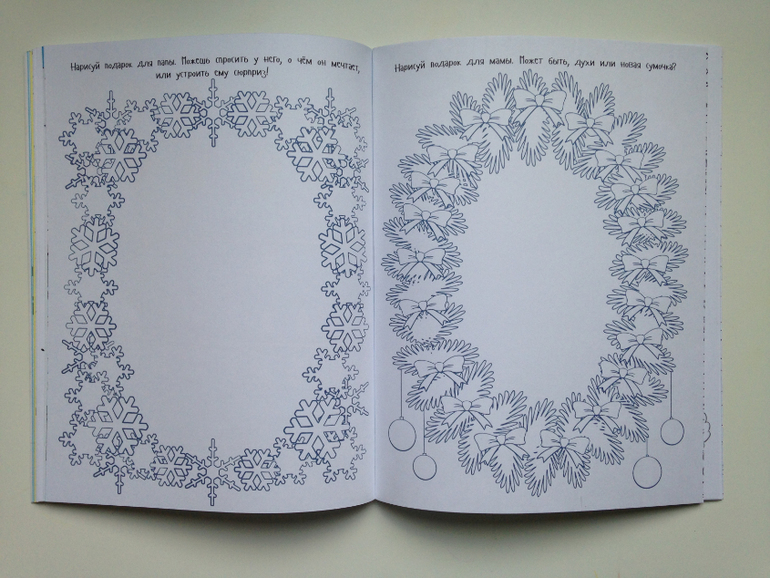 А это очень трогательный разворот: надо нарисовать подарки для папы и мамы. Боюсь предположить, что же это будет ))