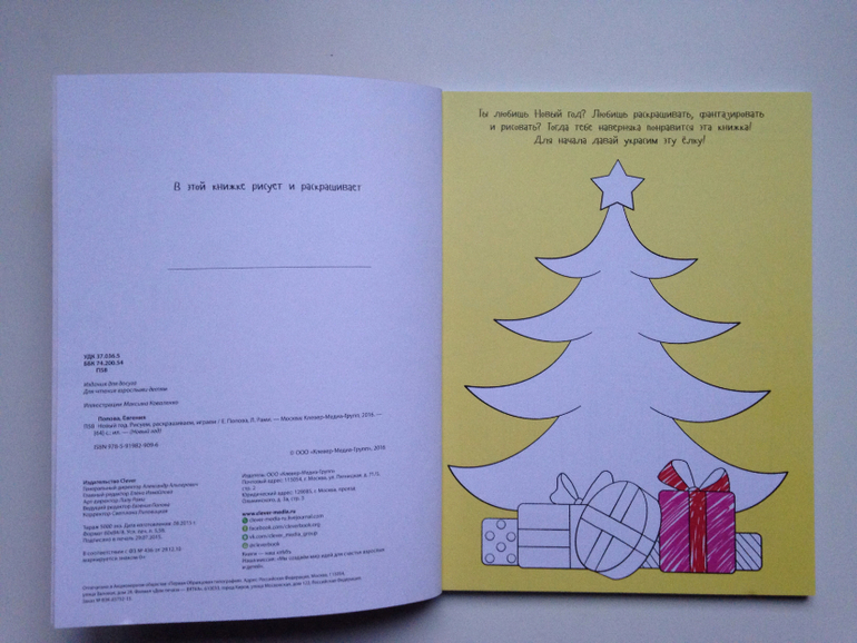 Зимние и новогодние книгиСледующую книгу Диме, в его-то три года, как раз можно разделить на весь декабрь (причем и 2015 и 2016 года) Не скажу, что он фанат раскрашивания. Но эта книга может заинтересовать, потому что она еще и развивашка, а это мы любим. Для новогоднего выпуска все-таки была задействована фантазия автора и художника, поэтому она вполне отвечает своему названию: "рисуем, раскрашиваем, играем", несмотря на то, что многое ожидаемо и привычно. И все-таки плюсик от нас =)