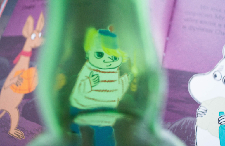 И они дали нам много пищи для игр. К примеру, после этой истории Алиска неровно дышит к бутылкам, которые валяются на улице. И я считаю, что это неплохой способ взглянуть иначе на суровую действительность. Да, у нас так - пивные бутылки на детской площадке. На тротуаре. В луже под окном. И я ничего не могу с этим поделать. А эта история - может. Я вижу мусор и грязь, я ною и морщу нос. А Алиске весело и хорошо, она видит послание с запиской от друга, приключение, привет от муми-троллей.
