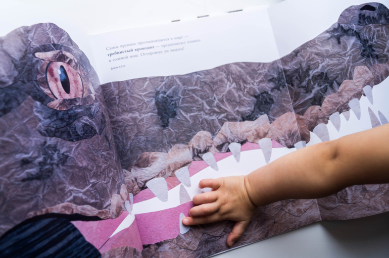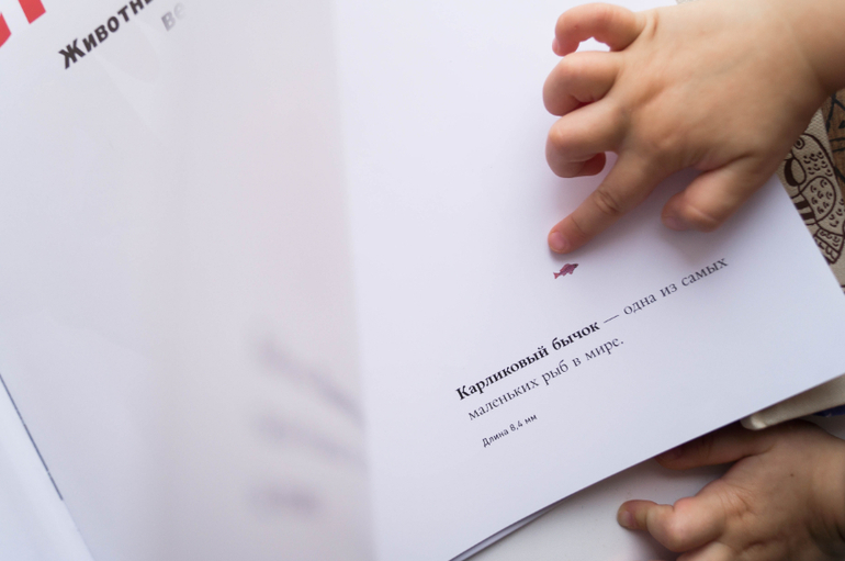 И так со всеми другими зверьми :)) Но тут, думаю, проблема с возрастом. Может, позже будет меньше раздражения и больше интереса. А может, я плохо понимаю, как с этой книгой играть и смотрю с какой-то не той стороны. Но я, и правда, не пойму. Информации в книге крайне мало, текста, считай, что нет. А размеры животных ребёнок уже и в двухлетнем возрасте прекрасно себе представляет. Мы видели в зоопарках и слонов, и крокодилов. Разве что кальмара не увидишь живьём. И бабочка поражает своим размахом. И длинный язык муравьеда. Но всё это открыл-увидел-отложил :) Есть здесь те, у кого эта книга в любимчиках? Расскажите, пожалуйста, что я упускаю? Очень хочется раскрыть её потенциал.