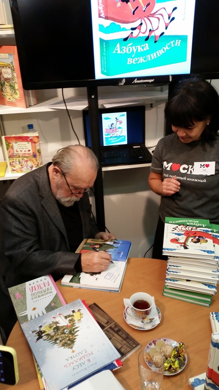 мероприятияПланировала на выставку поехать на пару часов. А там и Виктор Чижиков и Андрей Усачев и Сергей Алимов и даже случайно Юрия Норштейна увидела на стенде издательства "Красный пароход". Купила незапланированного Ежика в тумане, и подписала его, чему очень рада. Стоил 500 рублей.
