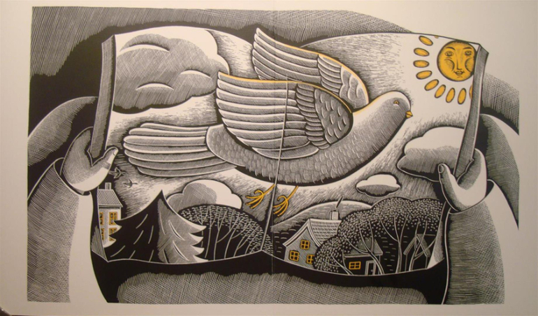 Иллюстрации Ури Шулевица мне очень по душе. Мы знаем этого автора в основном по двум книгам: «Как я учил географию» и «Летучий корабль». Книгу Snow в сообществе недавно показывали, но в другом формате: с мягкой обложкой. У меня картонка, и она чуть поменьше форматом.