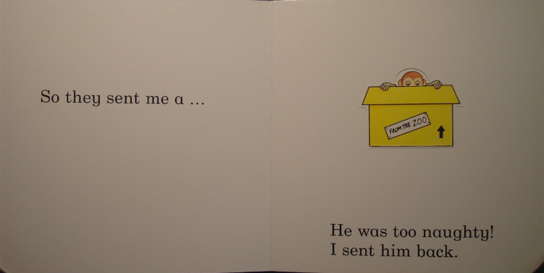 Начнем с Dear Zoo (ISBN 978-1-4169-4737-0). Автор Rod Campbell.