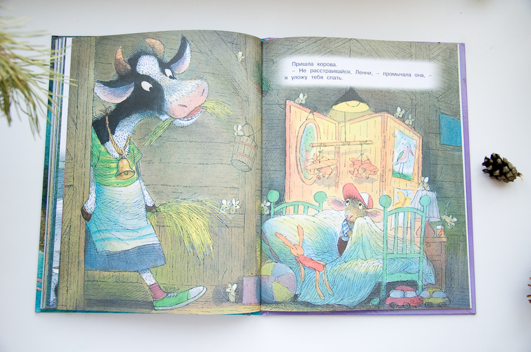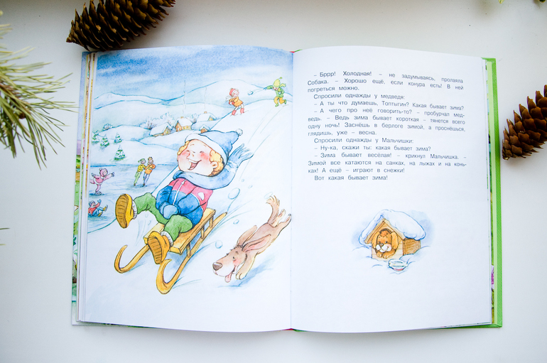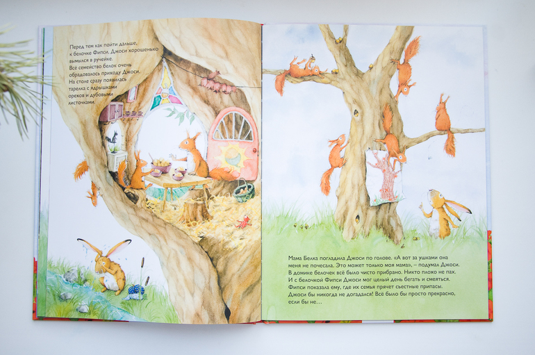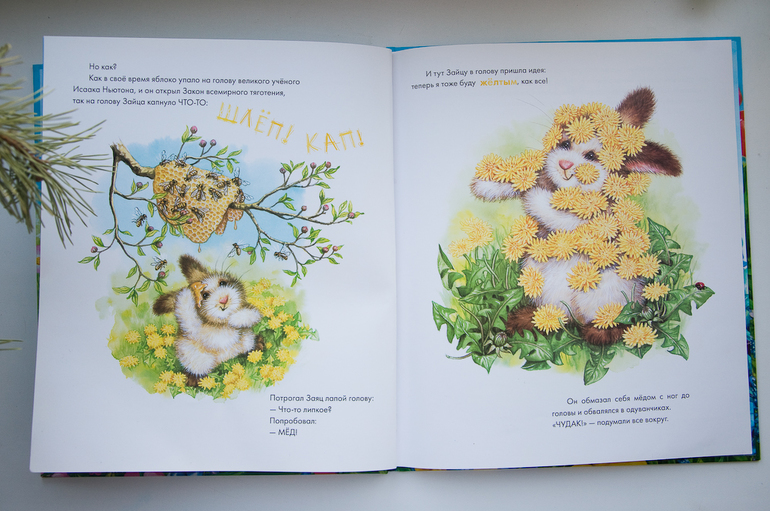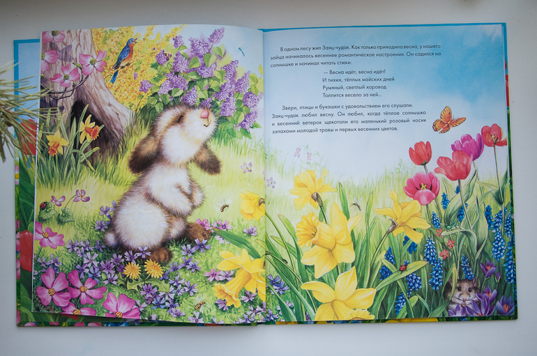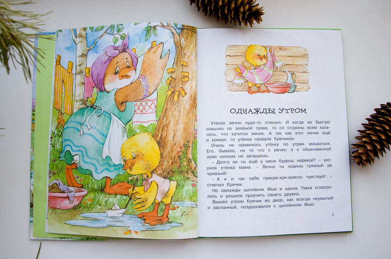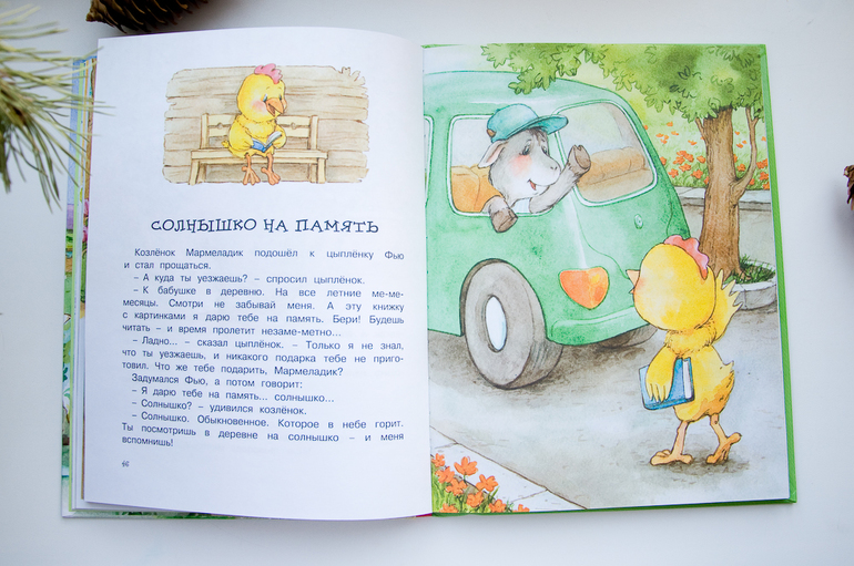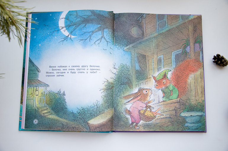 Книга содержит в себе большое количество небольших историй-сказок про маленьких зверят. Читаем, конечно, пока не все, но мимишность книги зашкаливает, а доброта плещет через край и разливается по всей квартире. Прям ходить страшно, того гляди на доброту наступишь.