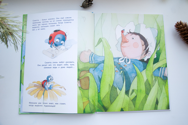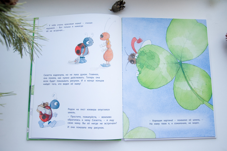 Книга большая, красива, мелованные страницы, дивные прозрачные мелованные страницы. Текст не шедевр, язык иногда спотыкается, но не критично. Сыну очень пришлась по душе милая маленькая божья коровка, которая потерялась. История не только красивая, но и поучительная.