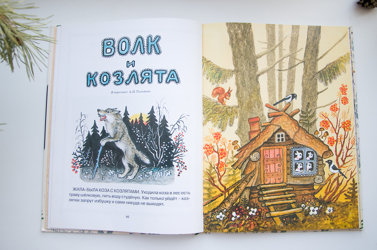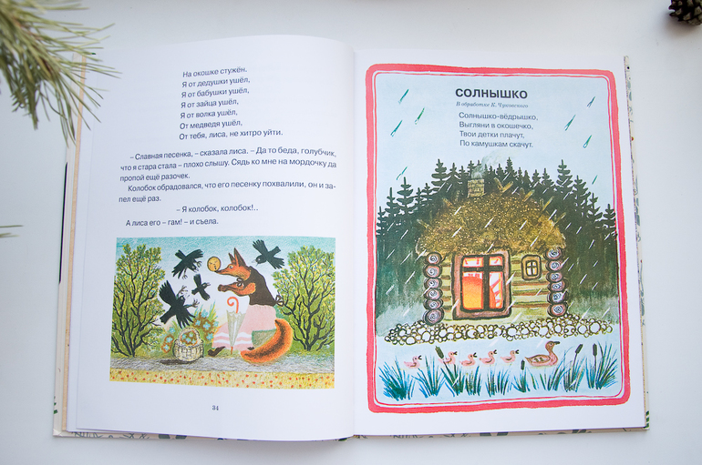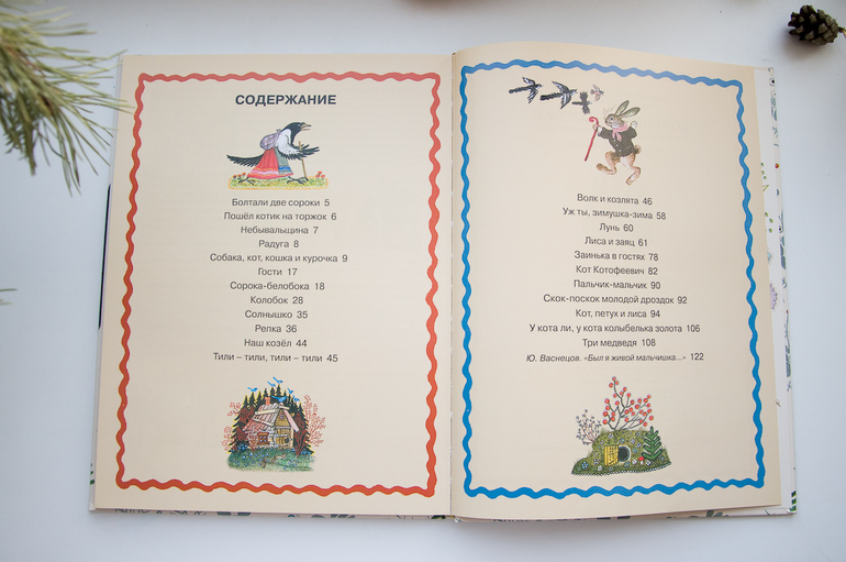 Да, книга богатая, такая русская, атмосферная, шикарные картинки на мелованной бумаге, но скорее для взрослой коллекции. Малышам, я думаю, нужно что-то проще. Хотя самую немногословную сказку «Собака, кот, кошка и курочка» сын любит, заставляет читать много раз. Возможно, возраст не подошел до остальных сказок. А пока порекомендовала бы отдельные сказки с Васнецовым («Лис и мышонок», «Собака, кот, кошка и курочка»), благо выбрать есть из чего.