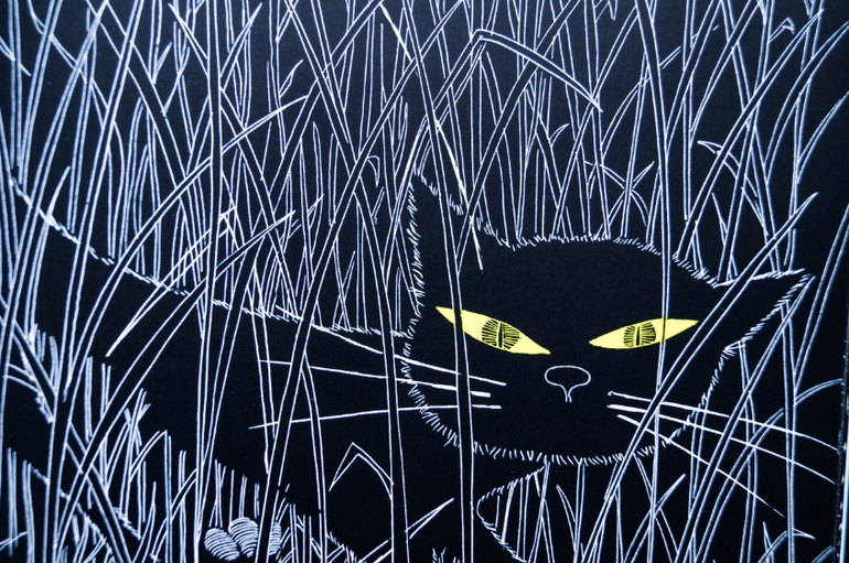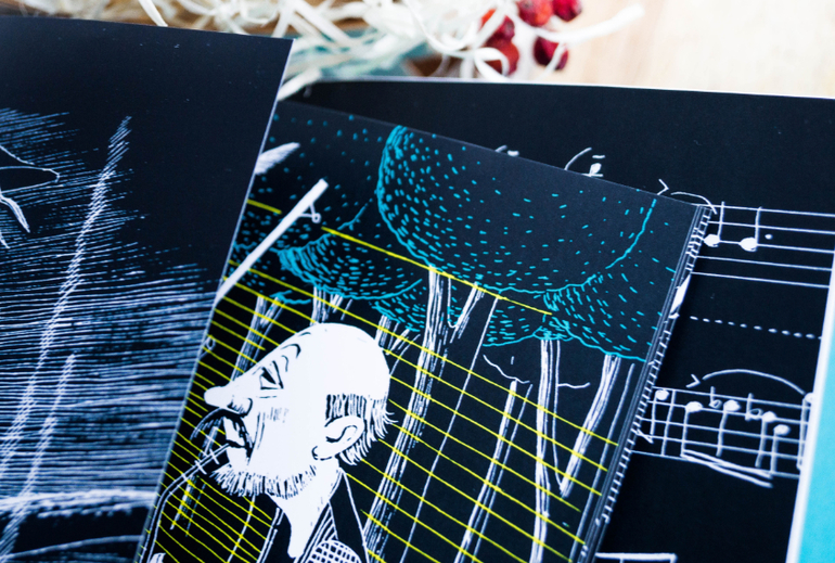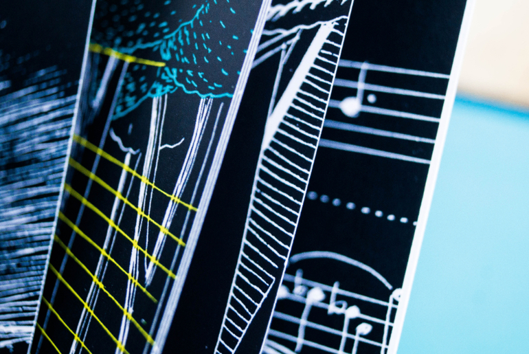 Нехитрые вроде рисунки, но очень даже хитрые на самом-то деле. Они удивительно музыкальные. Я смотрю на них и физически чувствую музыку. Пронизывает. Насквозь, до мурашек. И чёрный здесь не агрессивный или мрачный. Он создаёт глубину, акустику, от него словно отражаются звуки. И он умиротворяющий здесь. Как, знаете, когда заходишь в тёмную комнату у офтальмолога, сразу так хорошо и спать хочется :)