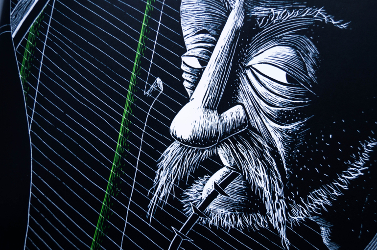 Немного наркоманский дедушка. Мне хочется пририсовать к нему тело гусеницы и кальян.